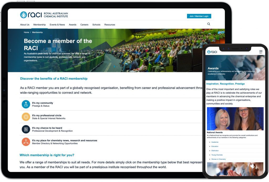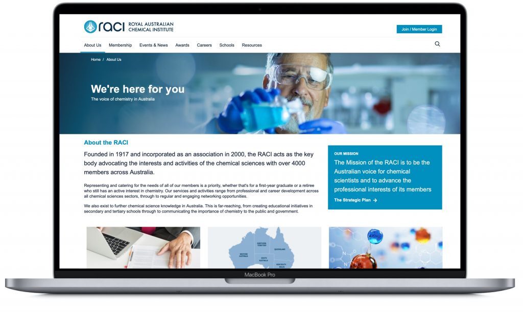 For over 100 years the Royal Australian Chemical Institute (RACI) has been the voice of chemistry in Australia. The Royal Australian Chemistry Institute is the professional body for the chemical sciences in Australia. The RACI engaged us to redesign their website with responsive design, to make it user friendly and streamline all RACI attributes. As the RACI is a large body with many users; chemists, students, educators, members and the public, a broader service that assists all users’ that needs to be implemented with a strong focus on user experience.